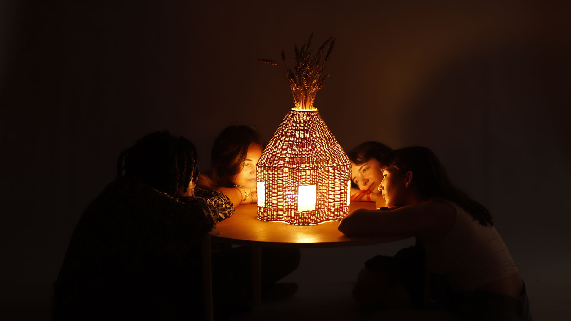 Centre de table lumineux, inspiré des cases traditionnelles du nord de la Côte d'Ivoire qui évoque la famille.
